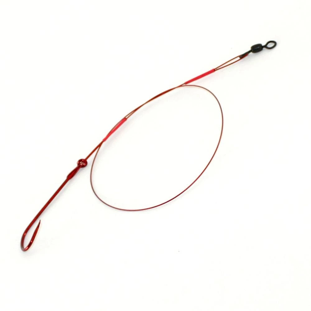 - Durable red coated Surflon cable looks like blood in the water when used top water