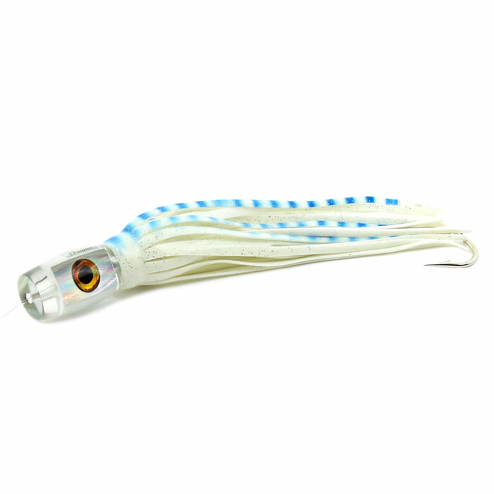 The Big Runner 8″ lure by Dragon is a mid-size trolling lure that works great for catching Mahi, Tuna, Billfish, even stray Wahoo. With vibrant colors and durable double skirts, these plugs are an affordable winner. The flat face makes a nice splash as it re-enters the water off of your wake, creating the type of commotion that big predator fish can’t resist. You’ll find that this lure works the best at speeds from 5 to 8 knots. Because of the compact size and lighter weight, the Big Runner is easy to fish, particularly from center console boats. 30 or 50 class gear is plenty for pulling the Big Runner to catch most Pelagic species.