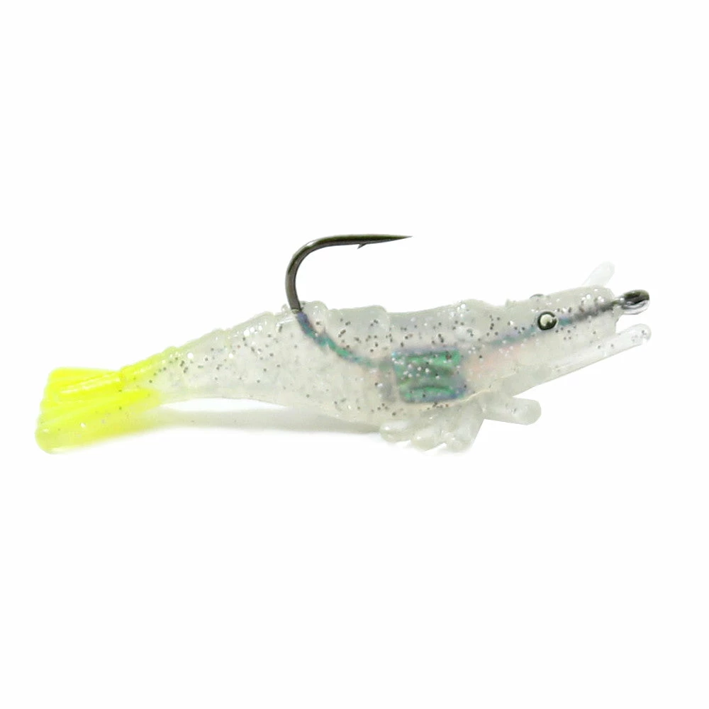 Inshore anglers love Billy Bay Halo Shrimp. These proven soft plastics are the real deal for catching Trout, Snook, Blues, Reds, Flounder, and more. With a durable forged hook, Perfect Sinker Halo Shrimp are ready to tie on and cast. You can fish them beneath a popping cork, or tied directly to your leader. The durable soft plastic encapsulates a perfectly positioned internal weight, resulting in consistent performance and a nice, smooth drop ever cast. FloGlo eyes add to the excellent bait presentation, as does the Halo flash material. Fish the Halo Perfect Sinker Shrimp with some sharp twitches on a lighter rod, and hold on!Â
