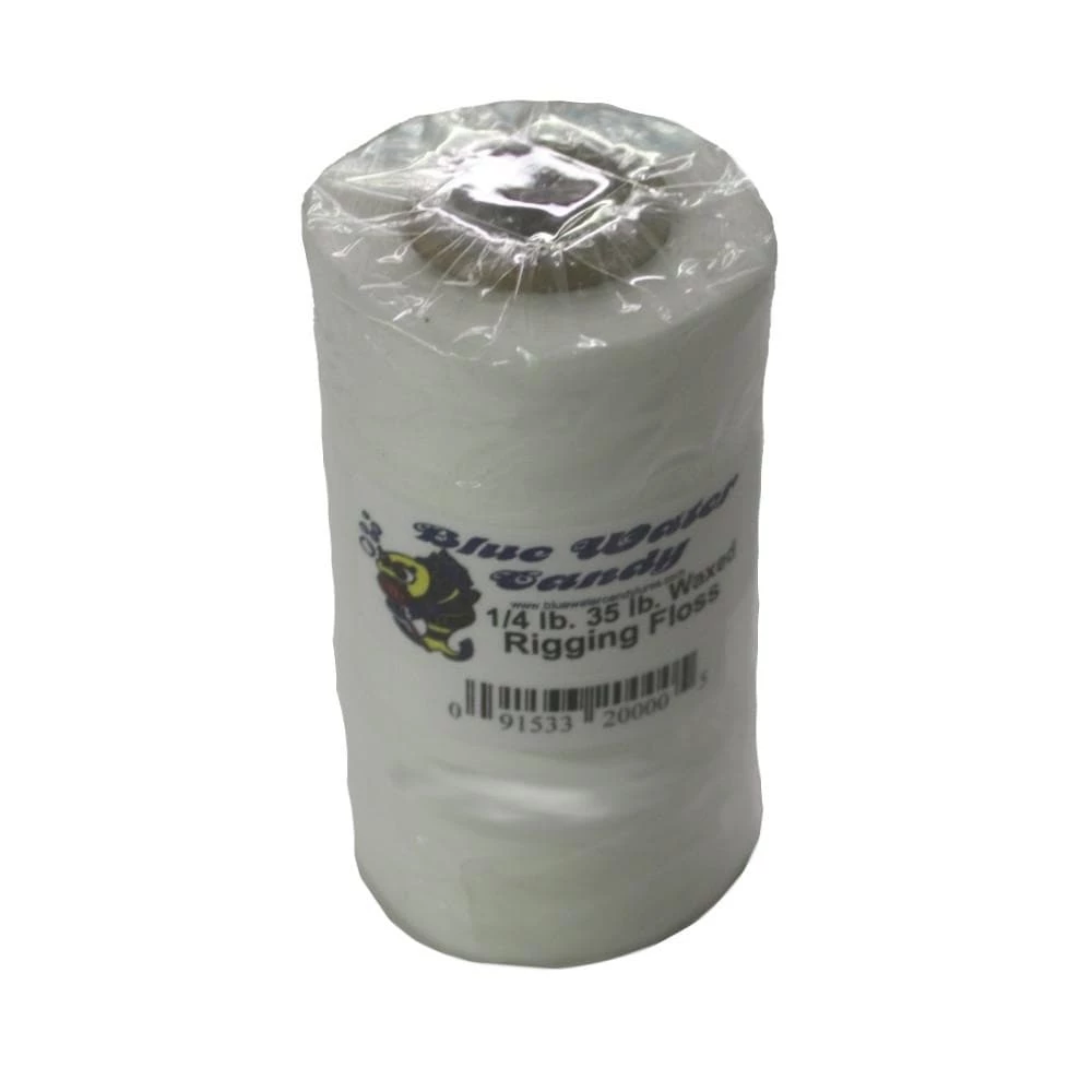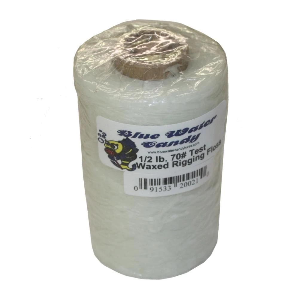 Rigging floss from Bluewater Candy is tacky and strong.  It’s great for rigging baits and/or tying skirts to trolling lures – like building your own sea witches.  We stock it in natural color.  We’ve got Bluewater Candy floss in 30, 50, and 70lb test.  The 30lb floss comes in 1/4lb spools, 50 and 70 come in 1/2lb spoools.  See our how-to for reference if you’re just getting into tying your own sea witches and want to learn more about one of the most common applications.  We also stock a wide range of sea witch heads, sea witch hair, and mylar.