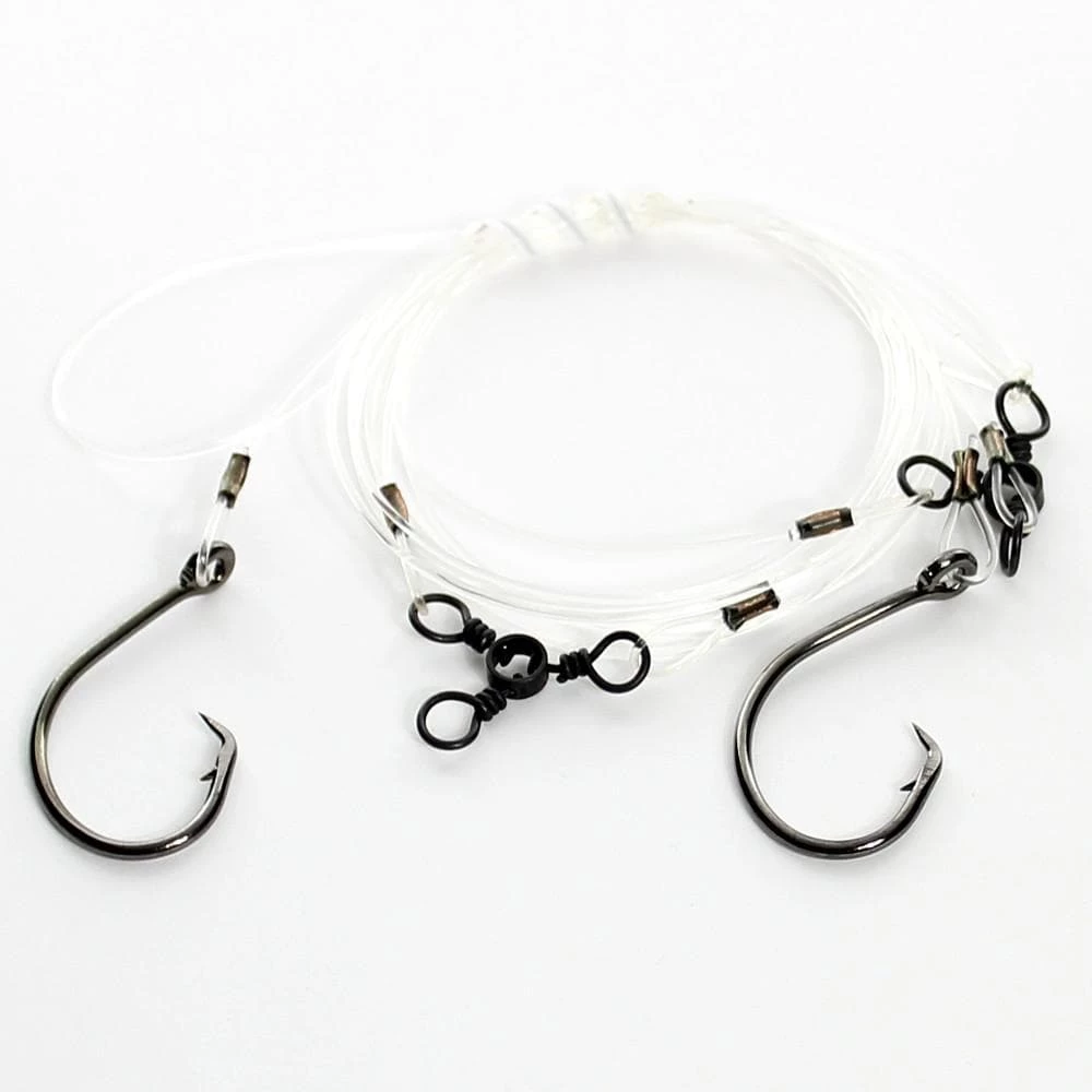Bottom Rigs from Blue Water Candy are an easy way to save time and hassle when prepping for a trip. Blue Water Candy offers these in three different sizes, 5/0 for smaller fish like Sea Bass, 7/0 for Snapper, and 9/0 for larger species such as Grouper. All options feature first rate materials. They use 130lb Mono on the Grouper rigs and 100lb on the Sea Bass and Snapper versions. Black nickel circle hooks are great for bottom fishing and compliant with current regulations. Each bottom rig features dual 3 way swivels and a loop for your bank or pyramid sinker. Made in the USA.