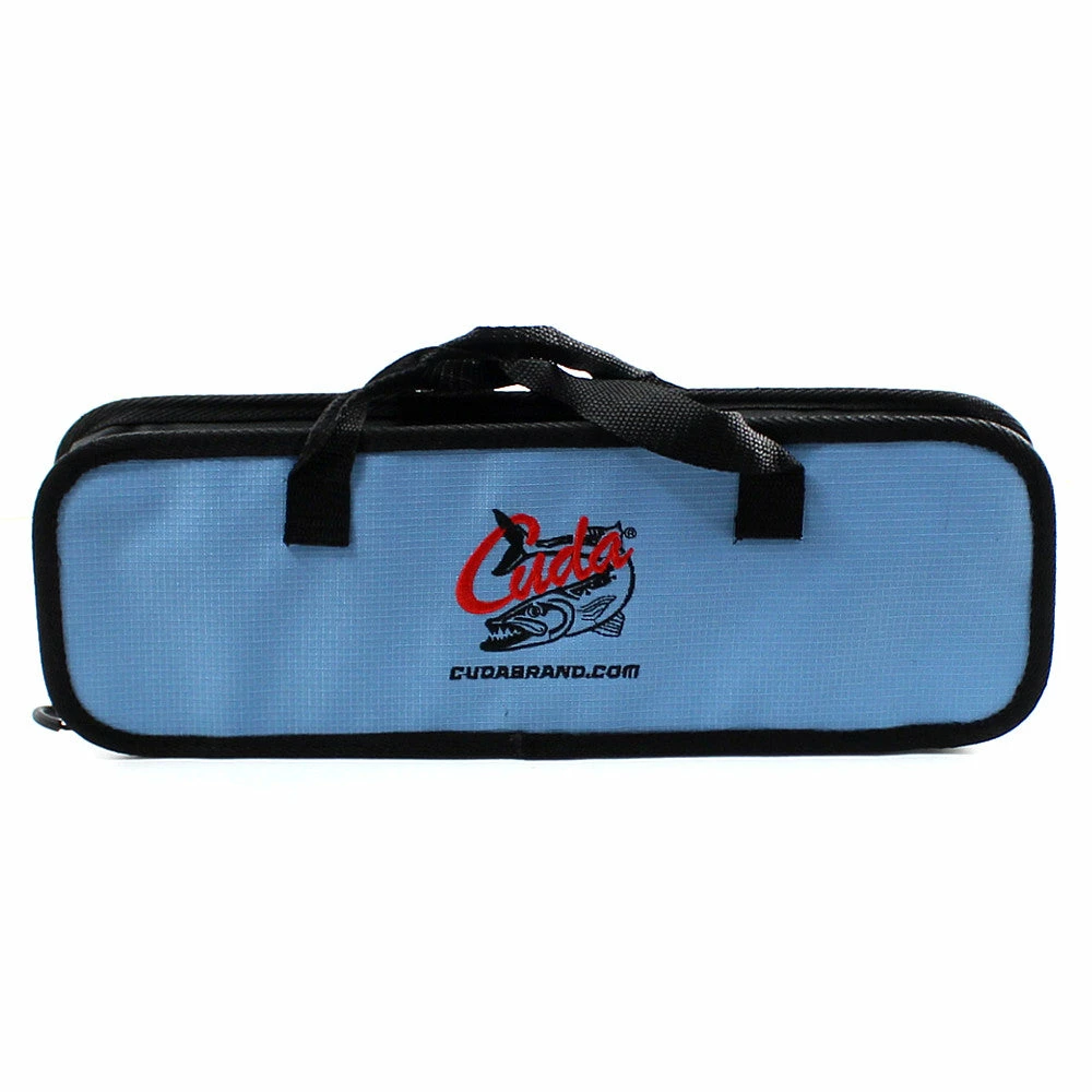 The Cuda 6 Piece Knife Set features 4 of Cuda’s top selling knives, along with a sharpener and a durable ballistic nylon storage case. In this set, you’ll get a chunking knife, a bait knife, a fillet knife, and a boning knife. This mix of sharp and durable knives helps to make quick work of a good days catch. When you’re done, simply rinse the German stainless steel blades off and put them back in the case for safe keeping. As with all Cuda fishing tools, this knife set features the proven scale pattern handles that maintain a solid grip, even with wet hands. A limited lifetime warranty provides anglers with peace of mind when choosing Cuda tools. Â
