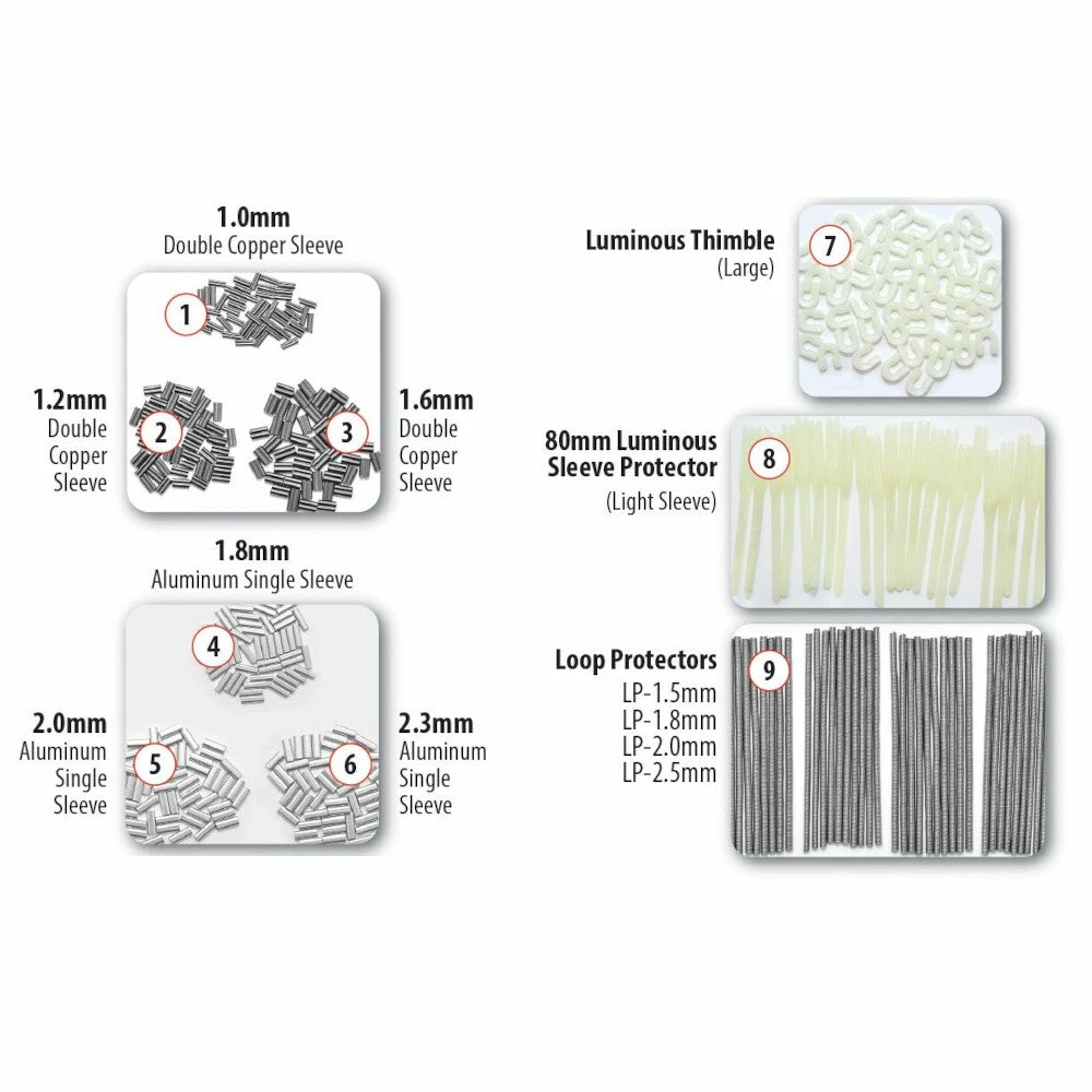 - 415 pieces copper sleeves, aluminum sleeves, thimbles, loop protectors, glow crimp covers