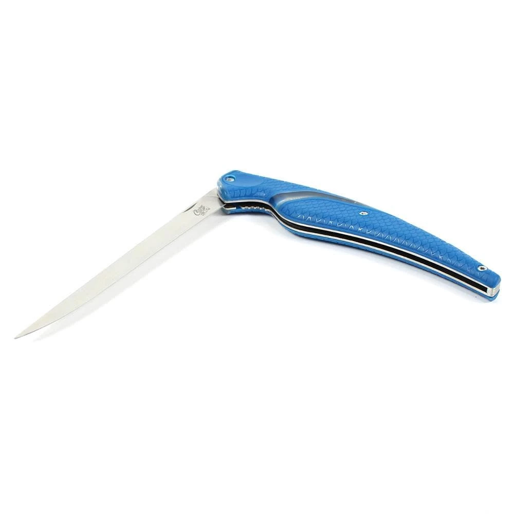 - Sharp fillet knife folds in half for safety, down to a compact size