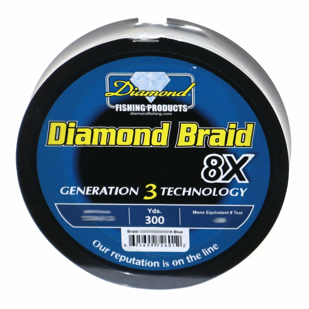 Diamond Solid Core Braid is the best saltwater fishing braid available today. Generation III brings even further advancements in terms of strength, smoothness, and longer lasting color. We stock Diamond Braid in 300, 600, and 3000 yard spools. Special orders are available upon request. Â