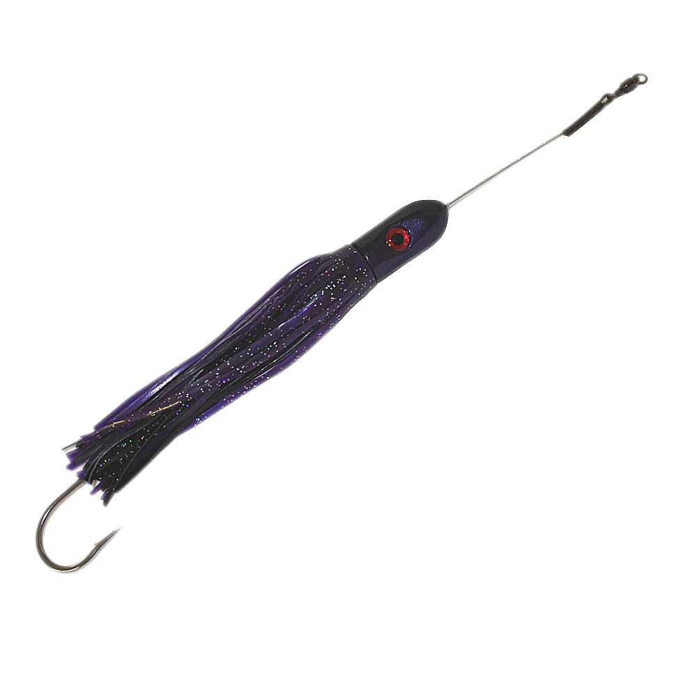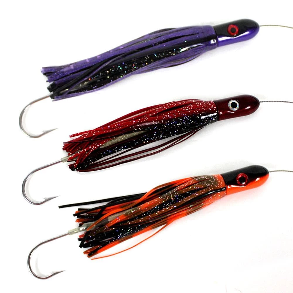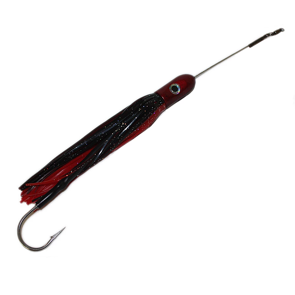 Joe Shute Lures high speed offering is the 10oz Cruiser. Capt. Joe makes this high speed trolling lure with a tough double collar for catching big Wahoo.  The Cruiser is designed for trolling speeds between 8 and 24 knots.  We rig the Cruiser on 480lb SS cable with a single stiff rig.  The cruiser comes in a variety of the most popular Wahoo colors.  This is a great lure for high-speed trolling, as it’s extremely tough, heavy, and easy to repair should the skirt become damaged from too many hungry ‘hoos trying to eat it.