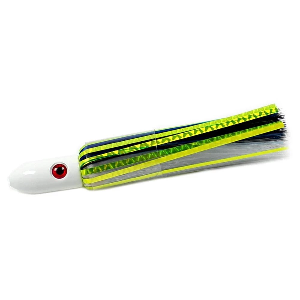 We recommend pulling Joe Shute 3 ounce lures at 5-9 knots. Usually, it’s best to pull these in front of a ballyhoo. We have a great selection of colored UV rubber bands for bait rigging.
