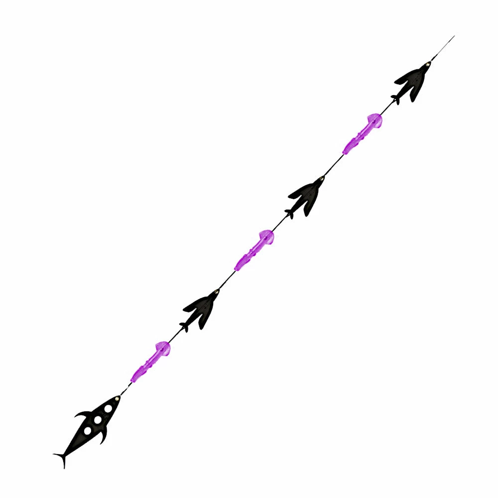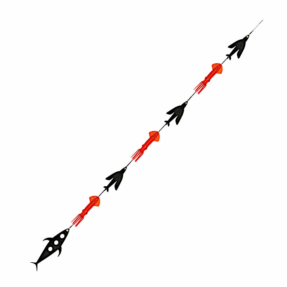 The Mud Flap/Squid Daisy Chain from Fish Razr does a great job of emulating a feeding frenzy, right behind your boat. The combination of shadows, along with bright colored squid and varying size profiles make this a very effective teaser to pull up top. Each chain features 3 flying fish flaps and 3 squid being chased by a larger, 18″ Tuna flap. Made with heavy duty crimps, these chains are very well-constructed. Overall length is roughly 8 feet.