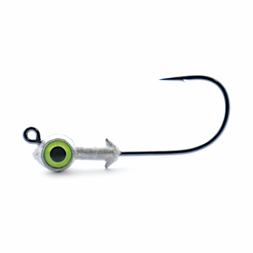 Redfish Eye Jig Heads are a staple for inshore anglers in the US. These innovative jig heads feature big, bright, 3D eyes that help to entice would be predators. Everything from juvenile Tarpon to Sea Bass, to Old Drum will fall victim to these killer jig heads. Thanks to the hook angle and placement, the eye is at the front of the head, reducing snags on oyster rocks. You’ll find these heads are perfect for your favorite soft plastic, such as the Swimmin’ Trout Trick. Made in USA. 3 Jig heads per pack.