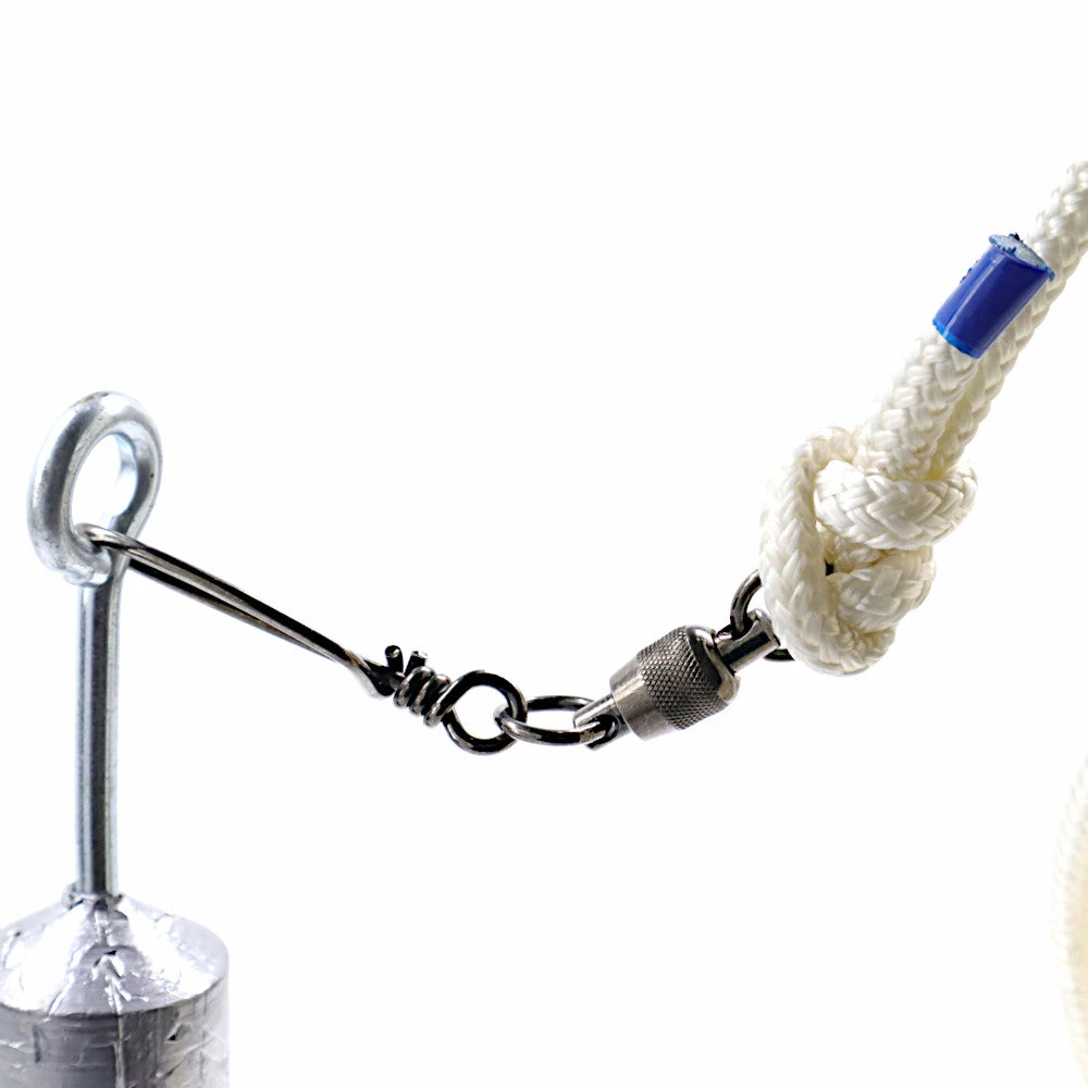 - 450lb stainless steel ball bearing snap swivel to eliminate rope twist