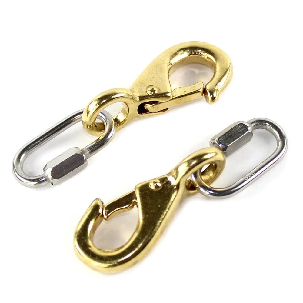 - Two brass snaps and two stainless steel locking D-rings