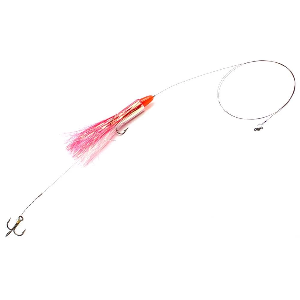 Bluewater Candy King Skirts feature durable and vibrant pearl tinsel resulting in a crazy flash that drives kings crazy. Â You’ll save time and hassle with pre-rigged lures. Â We sell this rig individually.