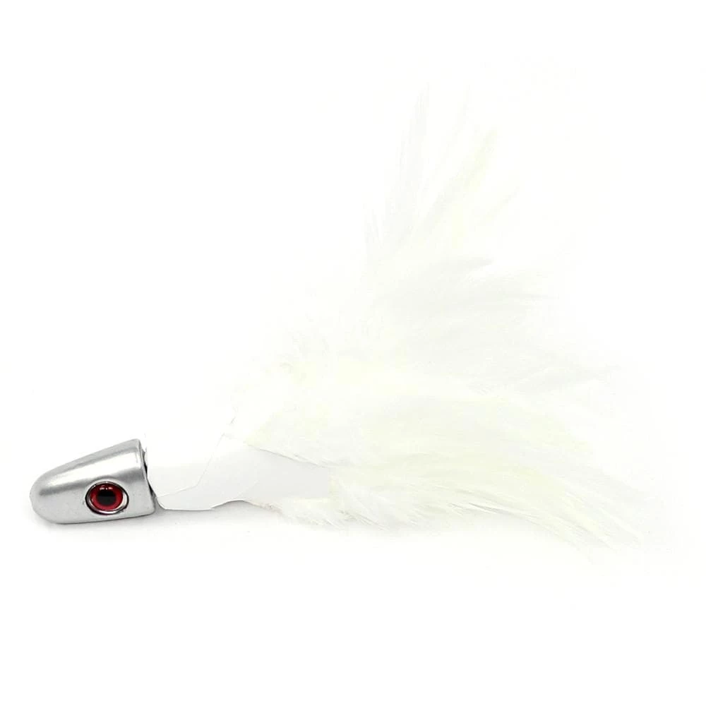 The plain lead head has durable and vibrant 3D red eyes. Â A plume of feathers mimics a bait fish with incredible accuracy once under drag in the water. Â Fish these simple lures with or without ballyhoo, or strip baits. Â We offer multiple rigging options.