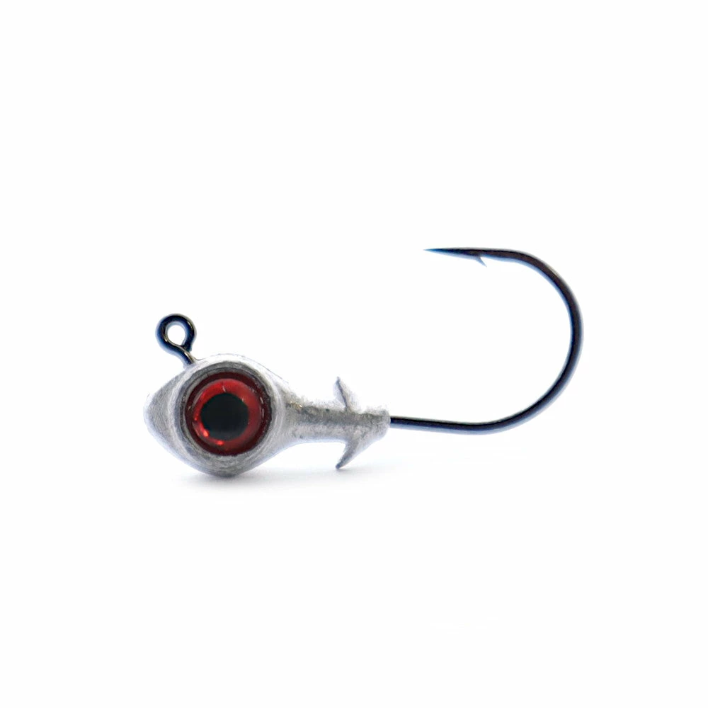 Since their development in South Carolina, Trout Eye jig heads have been responsible for countless Sea Trout landings. Scientific research has shown that game fish key in on the eye of bait, and use a visible eye as the determining factor when deciding to strike. Trout Eye jig heads feature the largest eye you can possibly fit onto this size jig head. While the eyes are oversized, the heads remain balanced. You’ll find they are perfect for your favorite smaller soft plastic, such as the Swimmin’ Trout Trick. Made in USA. 3 Jig heads per pack.