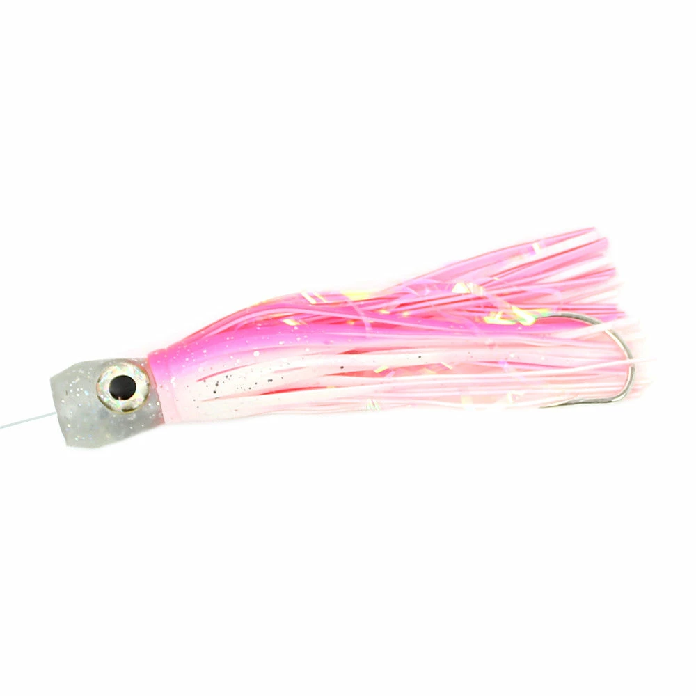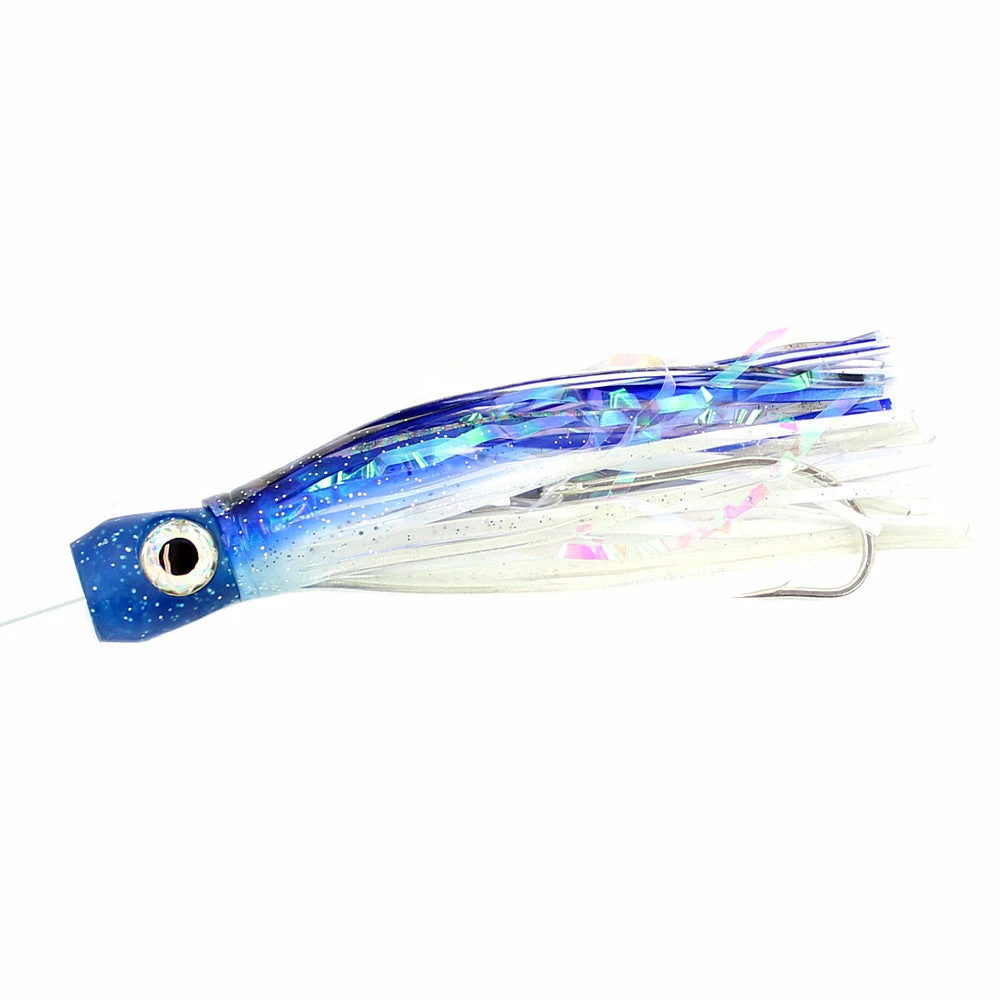 Williamson’s Soft Sailfish Catcher features a proven design with effective color combinations. Each of these saltwater trolling lures has a soft head with 3D prismatic eyes and single rubber skirts with strips of Mylar for excellent bait presentation. These 5″ lures work great for Sailfish, Mahi, Tuna, and more. You’ll appreciate the fact that despite being rigged with quality components from VMC and Sufix, these lures are quite affordable. We recommend trolling the Soft Sailfish Catcher between 5 and 7 knots for best performance.Â