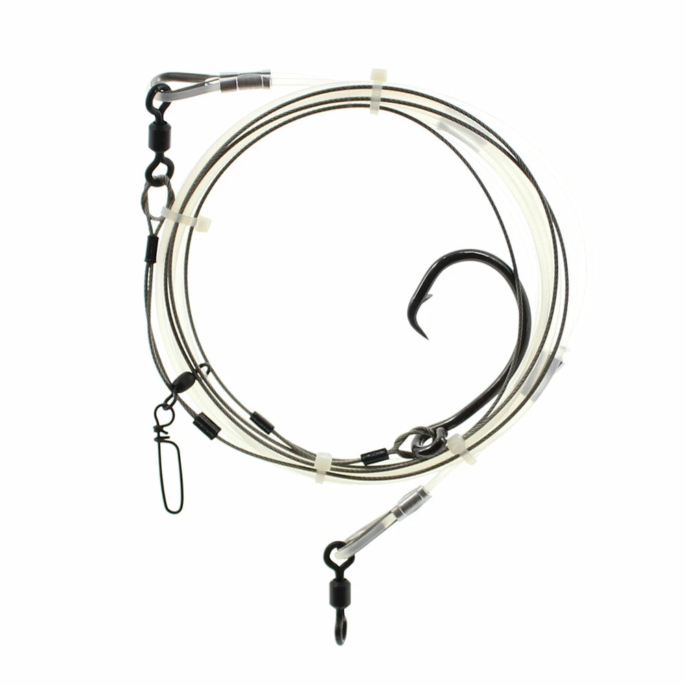 The XL Shark Rig from Lane Leaders is designed and made for one thing and one thing only – landing the biggest sharks in the ocean. Lane Leaders makes these tough shark fishing rigs in Florida, with top quality tackle and obvious attention to detail. We’ve found that these rigs are tough to beat for the price tag and time savings vs. making your own rigs. Choose from 14/0 or 16/0 Mustad Circle hooks. Sold individually.