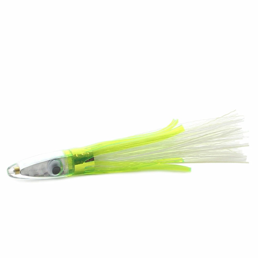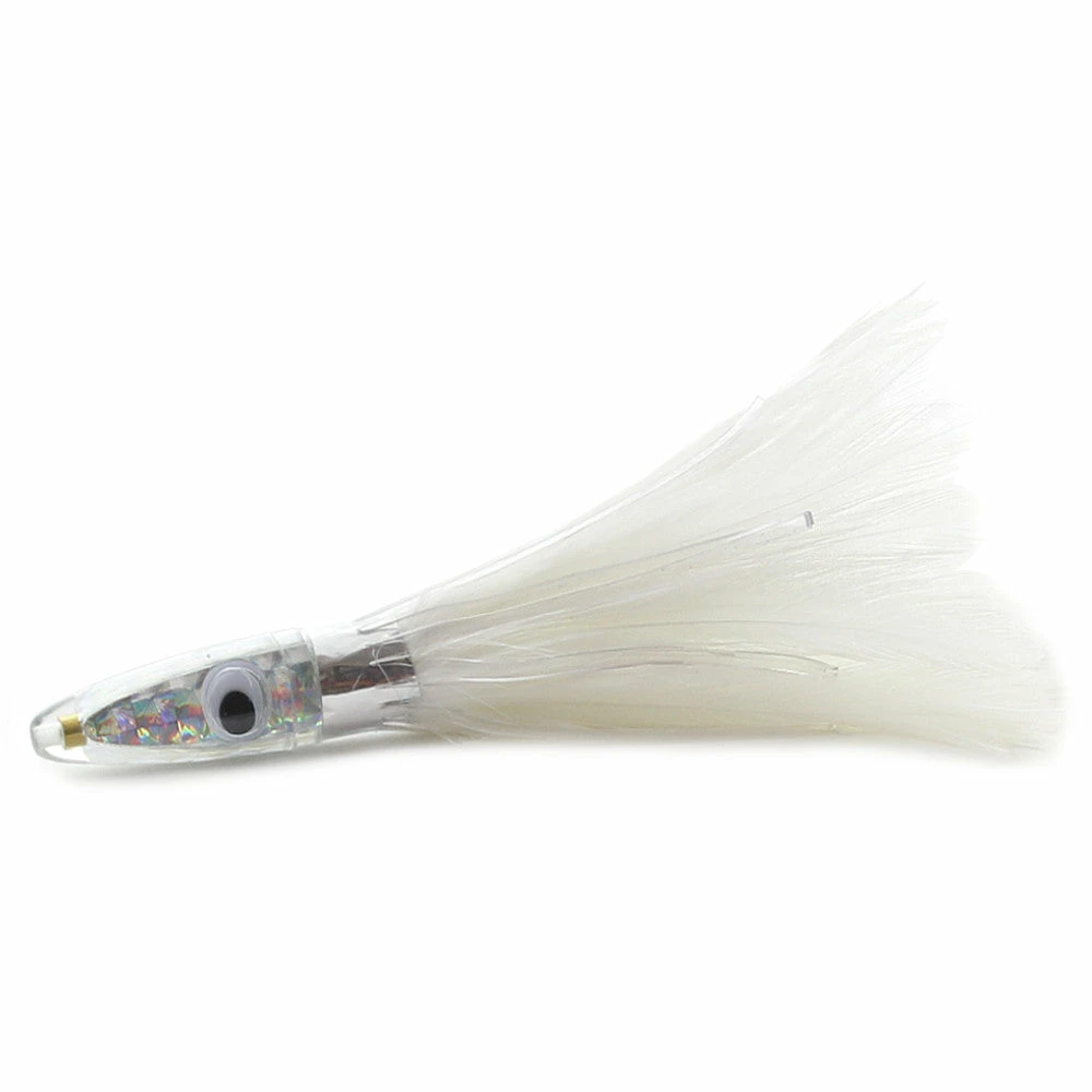 Zuker Feather Fishing Lures are a staple in the world of offshore trolling lures. These compact lures are able to troll up to 12 knots. They always track straight and drive Tuna or Mahi crazy! The feather design does an outstanding job of emulating a bait fish. In addition, the foil/bead insert in the head with prismatic coloring and large eyes, help to bring fish into your spread. Zuker enhances the vibrant feather colors with vivid vinyl outer skirts. Overall length is 6 inches, head length is 1-1/2 inches, and the total weight is around 2 ounces.
